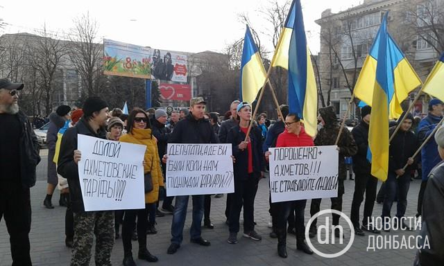 В Мариуполе (Донецкая область) сегодня, 7 марта, проходит митинг против торговой блокады Донбасса. Об этом сообщает корреспондент «Новостей Донбасса».