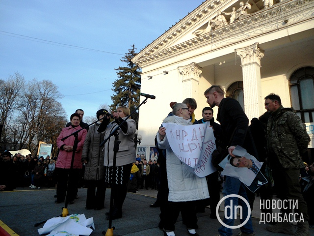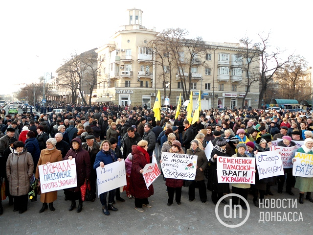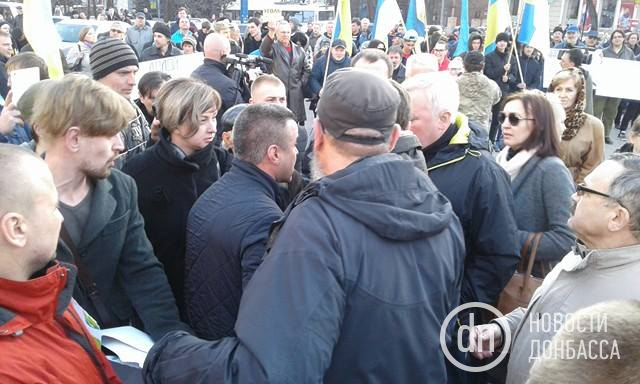 Сначала со сцены выступали народные депутаты Татьяна Черновол, Дмитрий Лубинец, Игорь Лапин, и другие. В толпе также присутствуют сторонники блокады. Им также дали слово.