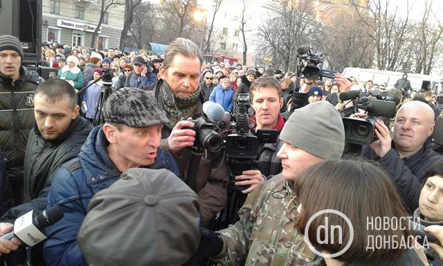 Дмитрий Дьяконов, который называет себя организатором митинга призывает прекратить блокаду. К нему присединяются народные депутаты.