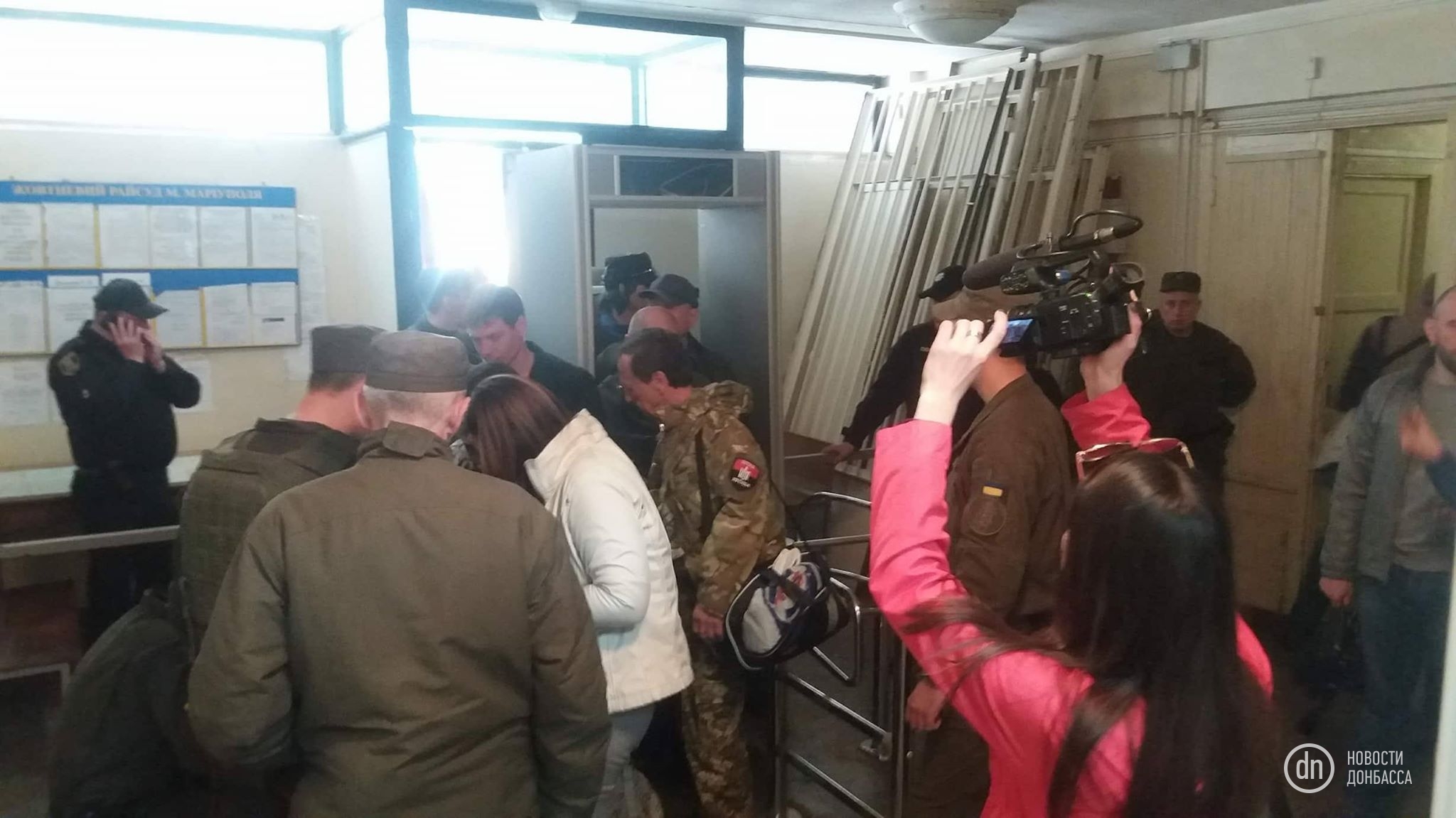 Поддержать Хоменко под здание суда приехало около 30 человек из разных городов области и еще около 20 – местные мариупольские активисты из разных организаций.