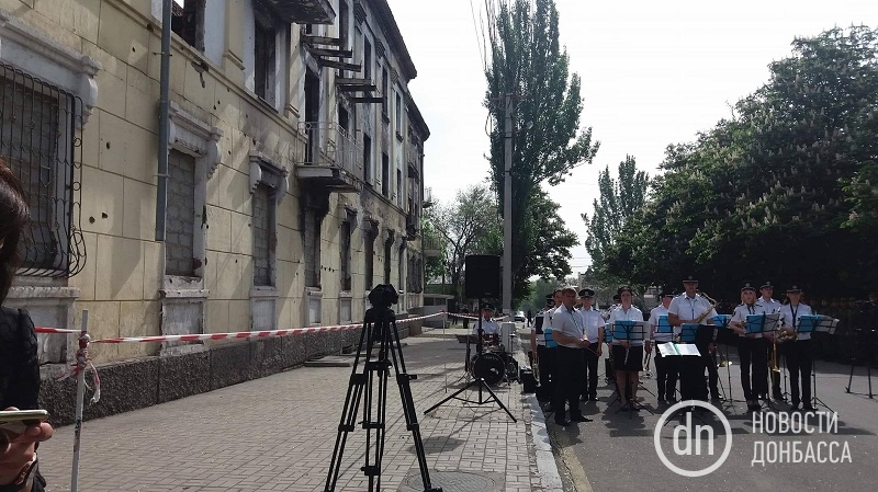 В Мариуполе у сгоревшего в 2014 м году здания полиции проходит официальный митинг памяти по погибшим. Об этом сообщает корреспондент «Новостей Донбасса».