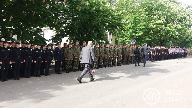 На митинг-реквием в честь работников органов внутренних дел и военнослужащих, погибших во время событий 9 мая 2014 года собрались, в основном, городские чиновники и представители полиции.