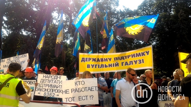 В Киеве под зданием Верховной Рады проходит митинг горняков государственных шахт. Об этом сообщает корреспондент «Новостей Донбасса».