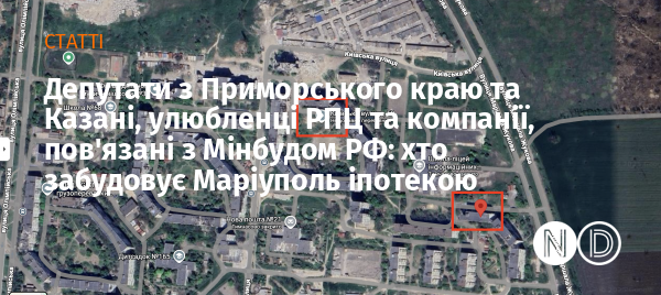 У листопаді цього року голова угрупування «ДНР» Денис Пушилін передав близько 30 тисяч квадратних метрів землі у центрі Маріуполя компанії «Порфір». Тепер на місці знесених будинків 74, 76, 78, 80 та 88 на проспекті Будівельників з'являться нові багатоповерхівки.