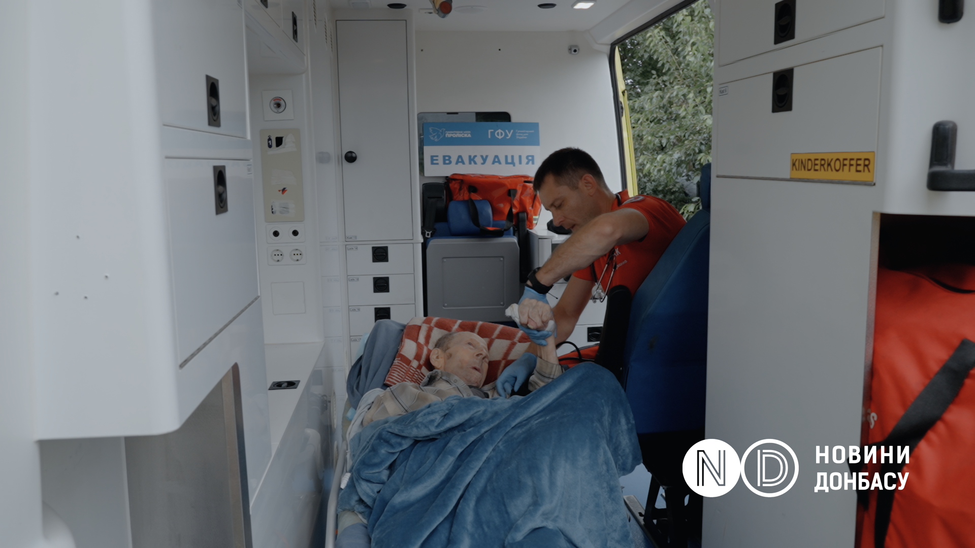 «Звичайно, вік уже такий похилий. І дорога тим більше, їхати години 3-4, тож медичний супровід у такому віці вже є обов'язковим. У дорозі може статися все, що завгодно», — пояснює медпрацівник Дмитро Лигун, який супроводжує евакуацію.