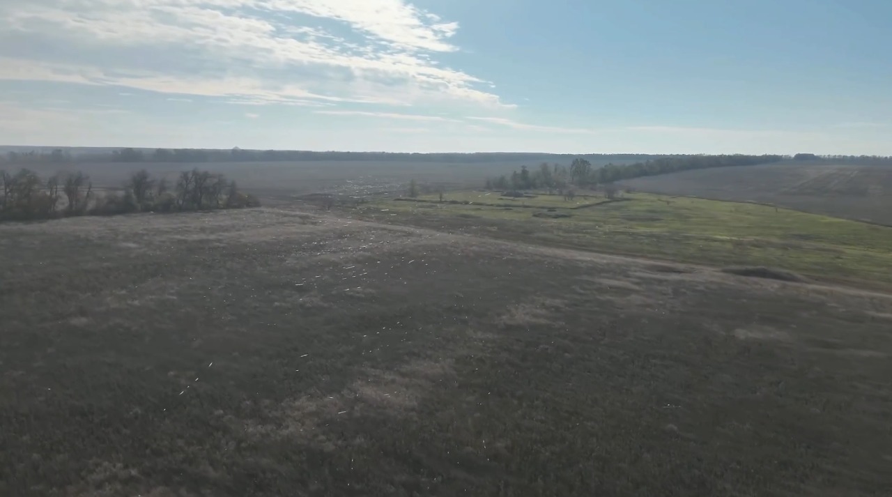 Поля, повністю пронизані оптоволокном під Покровськом. Скрин із відео
