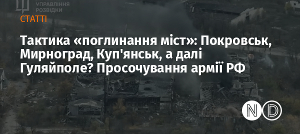 Росія активно застосовує нову стратегію війни — тактику «поглинання міст». Малі групи по 2–4 особи просочуються в житлову забудову, закріплюються в підвалах і будинках, а потім поступово накопичуються, перетворюючись на повноцінні взводи. Саме так окупанти діяли у Покровську, Куп’янську, Мирнограді та на низці інших напрямків. Дрони‑«розвідники», переодягання в цивільний одяг, диверсії по логістиці — усе це частина однієї моделі, яку російські сили тепер вважають ключовою. У цій статті — повна картина: що робить Росія, чому це працює, які міста під загрозою найближчим часом і як Україна може протидіяти.