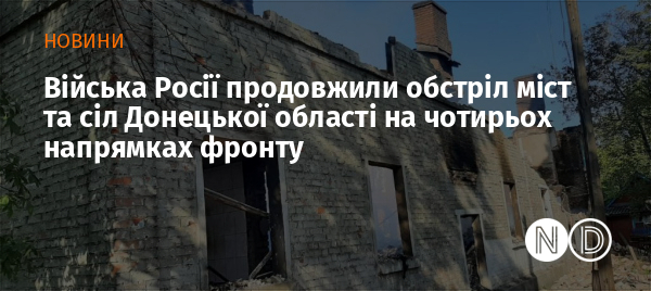 Війська Росії продовжили обстріл міст та сіл Донецької області на чотирьох напрямках фронту