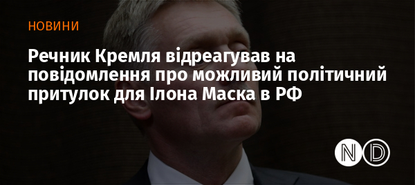 Прессекретар Путіна Дмитро Пєсков відмовився коментувати повідомлення про те, що американський бізнесмен Ілон Маск нібито попросив притулку у Росії.