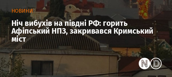 Близько 6-ї ранку в селищі Афіпський також стався вибух. Жителі почули гучний хлопок та помітили густий дим у районі одного з промислових об'єктів. За попередніми даними, причиною події стала атака українських БПЛА. Офіційних заяв від влади поки що не надходило. Очевидці пишуть, що горить Афіпський НПЗ.