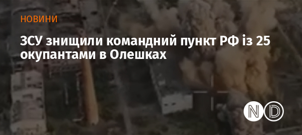 Винищувач високоточним ударом авіабомби знищив підземний командний пункт батальйону ЗС РФ у місті Олешки, Херсонська область. Відео опублікував відеоархів російсько-української війни War Archive.