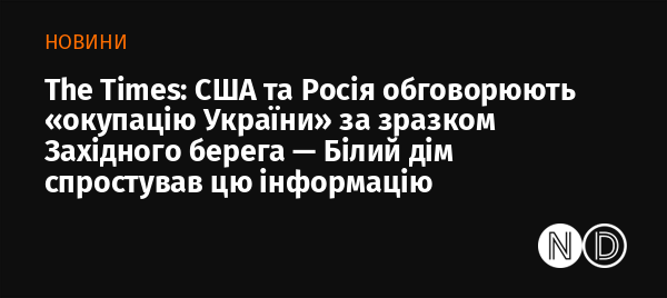 США та Росія нібито розглядають план «окупації України на зразок Західного берега», пише The Times. За даними видання, радник Дональда Трампа Стів Уіткофф підтримує ініціативу, яка може бути оприлюднена до майбутньої зустрічі президента США Дональда Трампа з Володимиром Путіним на Алясці у п'ятницю, 15 серпня.