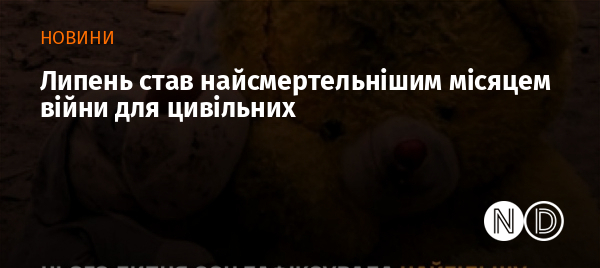 У липні 2025 року в Україні зафіксовано найбільшу кількість загиблих і поранених цивільних за три роки повномасштабного вторгнення РФ. Про це повідомили в СтратКом ЗСУ з посиланням на Моніторингову місію ООН.