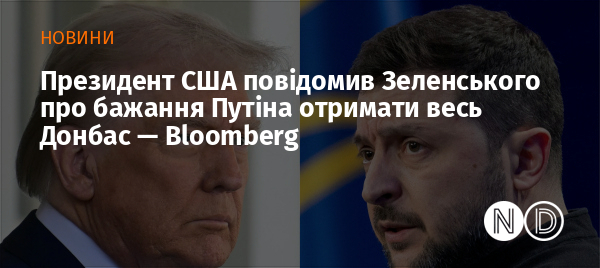 Трамп передав Зеленському, що Путін хоче отримати весь Донбас. Про це пише американське видання Bloomberg.