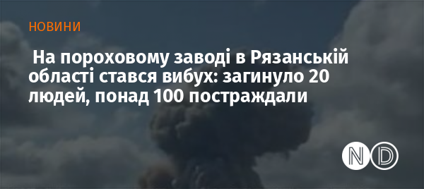 У Рязанській області РФ вранці 15 серпня стався вибух у пороховому цеху військового заводу «Еластик», де виробляють боєприпаси. До 20 осіб побільшало загиблих. Про це повідомляють російські ЗМІ.