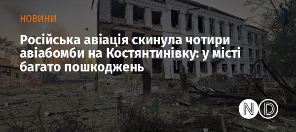 20 серпня о 04:20 російська авіація скинула чотири авіабомби ФАБ-250 на житлові квартали міста Костянтинівка Донецької області. Про це повідомив голова Костянтинівської міської військової адміністрації Сергій Горбунов.