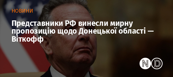 В інтерв'ю американському телеканалу Fox News спецпредставник президента США Стів Віткофф заявив, що Росія у питанні припинення війни проти України винесла на обговорення свою «мирну пропозицію» по Донецькій області.