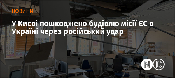 Будівлю місії Євросоюзу в Україні було пошкоджено внаслідок російського удару по Києву. Фото: Андрій Сибіга/Х