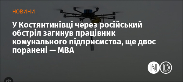Працівник одного з комунальних підприємств Костянтинівської громади Донецької області загинув через російський обстріл. Двоє людей дістали поранення.