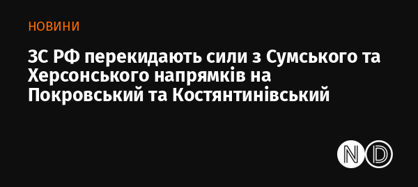 За даними джерела, частина російських сил знята з Сумського та Херсонського напрямків та направлена на Покровський та Костянтинівський. Зокрема, з лівого берега Херсонської області до окупованого Бахмуту перекидають підрозділи 70-ї мотострілецької дивізії РФ.