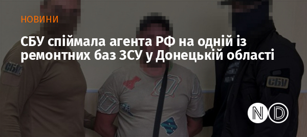 Співробітники Служби безпеки України затримали ще одного агента РФ, який коригував вогонь українськими військовими на Краматорському напрямку Донецької області. Основним його завданням був пошук та передача координат ремонтних баз, де відновлюють пошкоджену техніку українських військ після боїв на передовій. Йому загрожує довічне ув'язнення з конфіскацією майна.