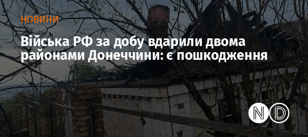 Російська армія минулої доби, 1 вересня, атакувала низку населених пунктів Донецької області. Внаслідок ударів пошкоджено будинки, господарські будівлі та адміністративні будівлі. Про це повідомив начальник Донецької обласної військової адміністрації Вадим Філашкін.