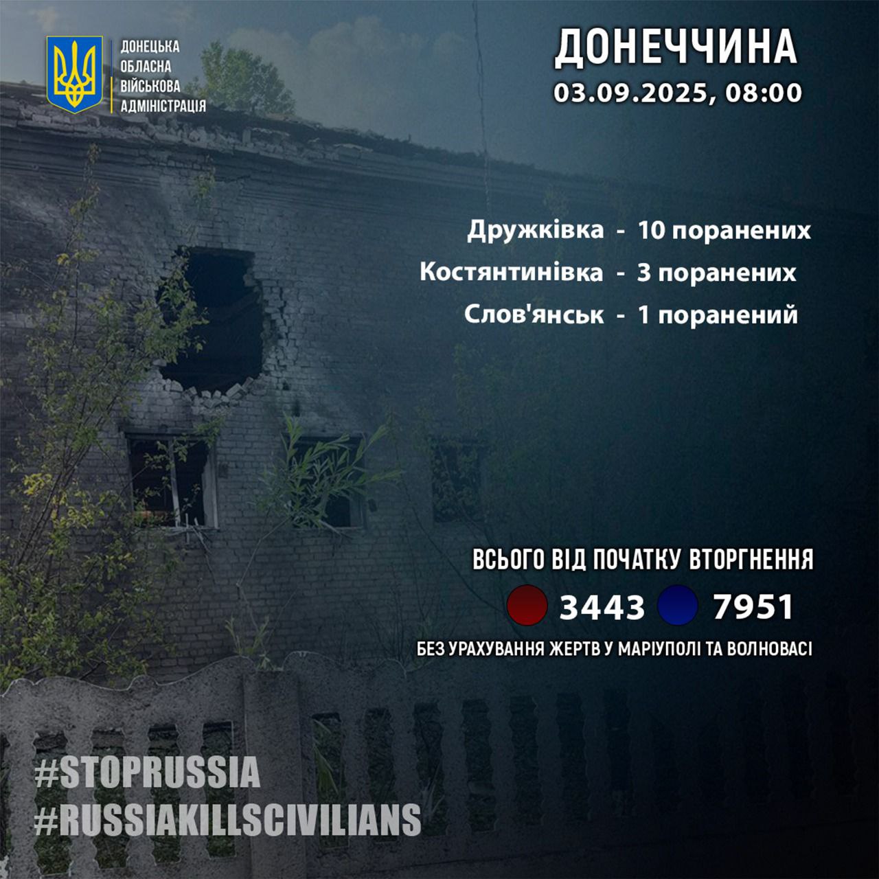 За 2 вересня росіяни поранили 14 жителів Донецької області. Про це повідомив голова Донецької обласної військової адміністрації Вадим Філашкін.
