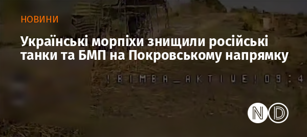 38-ма бригада морської піхоти ЗСУ знищила два танки та БМП російської армії на Покровському напрямку. Про це повідомили у пресслужбі оперативно-стратегічного угруповання військ «Дніпро».