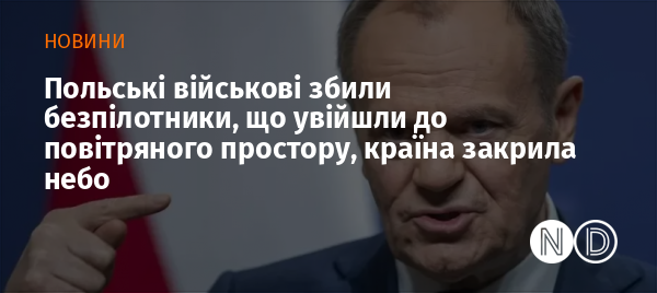Як повідомив прем'єр-міністр Польщі Дональд Туск у соцмережі X, «йде операція, пов'язана із багаторазовим порушенням польського повітряного кордону. Армія застосувала зброю проти цих об'єктів.