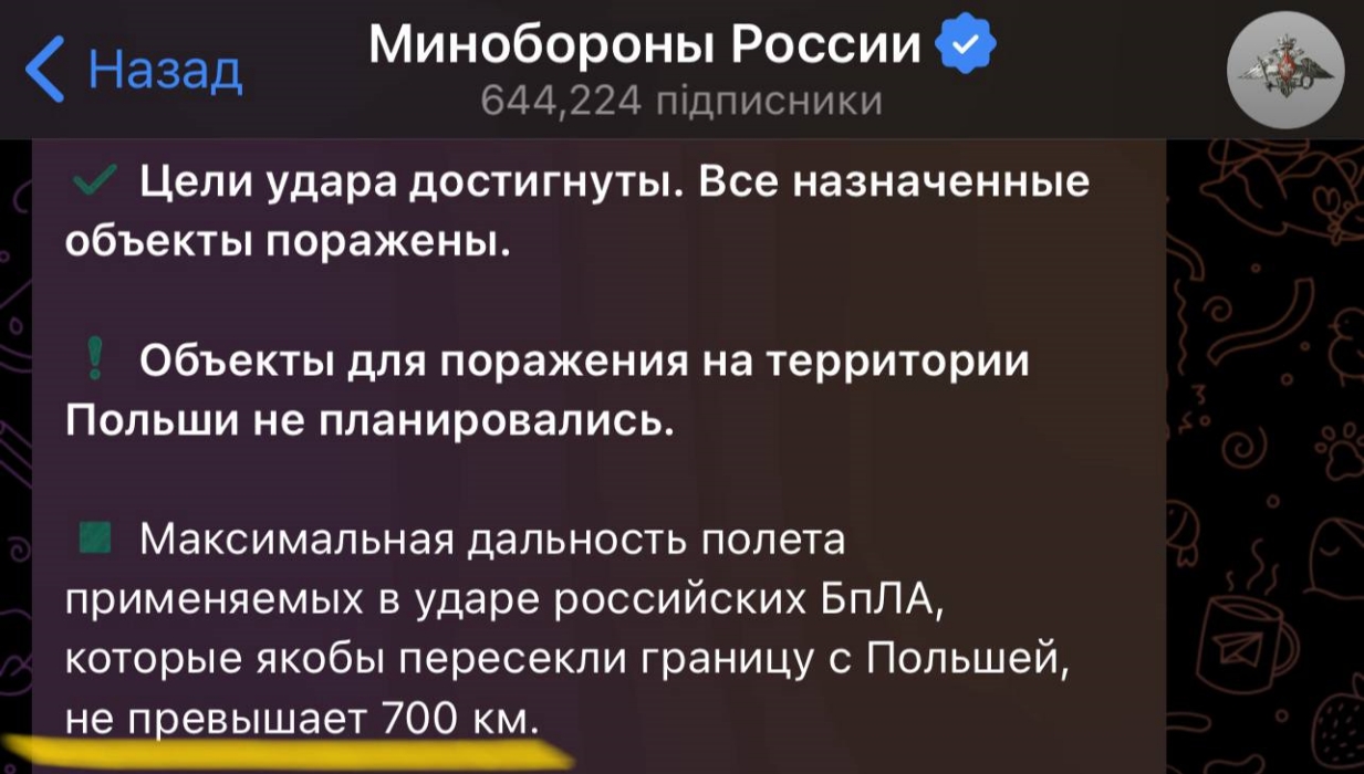 Від аеродрому Шаталово, де розміщені шість стаціонарних пускових установок БПЛА «Shahed-136» і «Гербера», до польського Жешува близько 985 км.