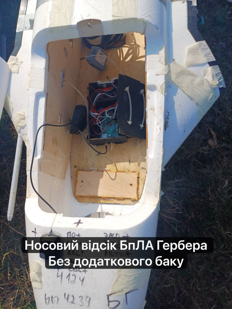 За даними джерела, всі «Гербера», знайдені в Польщі, мали додаткові паливні баки в носовій частині, тоді як на території України таких модифікацій не фіксували. Це вказує на існування спеціальної версії дронів, розрахованої на далекі перельоти — наприклад, до Польщі.