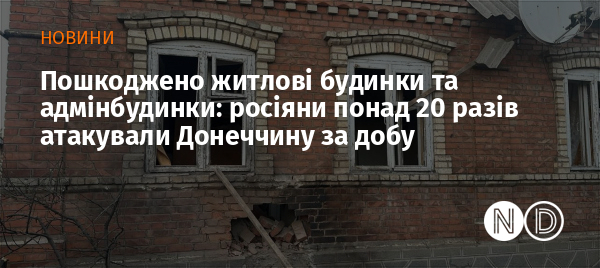 Російські окупанти минулої доби, 12 вересня, обстріляли низку населених пунктів Донецької області. Внаслідок атак пошкоджено адміністративні будівлі та будинки. Про це повідомив начальник Донецької обласної військової адміністрації Вадим Філашкін.