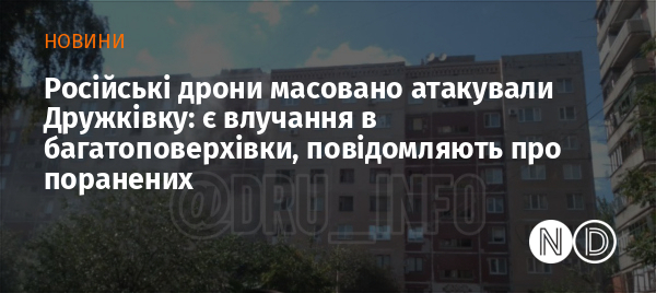 Попередньо двоє людей постраждали внаслідок масованої атаки російських безпілотників на місто Дружківка Краматорського району Донецької області 15 вересня. Про це повідомляють очевидці у соціальних мережах.