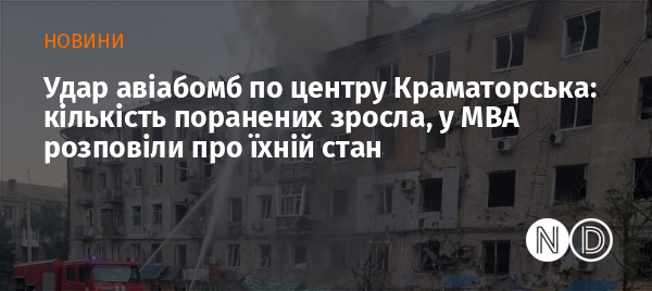 Зараз відомо про 15 поранених внаслідок удару російських авіабомб по центру міста Краматорськ Донецької області. Про це у коментарі «Новинам Донбасу» повідомив начальник Управління з питань інформаційної політики Краматорської міської військової адміністрації Ігор Єськов.