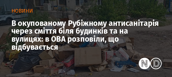 В окупованому місті Рубіжне Луганської області «комунальні служби» не в змозі регулярно вивозити побутове сміття, яке накопичується біля будинків та на вулицях. Про це повідомив голова Луганської обласної військової адміністрації Олексій Харченко.