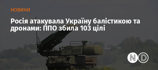 Станом на 09:00 протиповітряна оборона збила 103 ворожих БПЛА типу Shahed, Гербера та дронів інших типів на півночі, півдні та сході України.