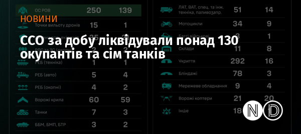 Раніше ми писали, що Генштаб ЗСУ повідомив в оперативному зведенні, що за минулу добу авіація, ракетні війська та артилерія Сил оборони завдали ударів по двох пунктах управління, артилерійській установці, складу боєприпасів, шести районах зосередження особового складу, озброєння та військової техніки, а також.