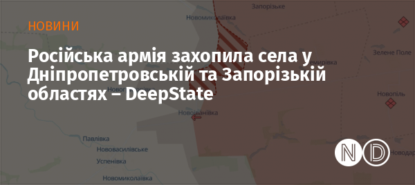 Війська Росії окупували села Новомиколаївка на Дніпропетровщині та Новоіванівка на Запоріжжі. Про це повідомили аналітики DeepState.