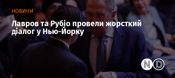 Між міністром закордонних справ Росії Сергієм Лавровим та державним секретарем США Марко Рубіо у Нью-Йорку відбулася напружена розмова з українського питання. Переговори пройшли за зачиненими дверима і тривали близько години.