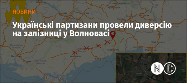 Партизанський рух «АТЕШ» заявив про нову диверсію на залізниці та зрив постачання окупантів у районі Волновахи. За даними організації, агент пошкодив ділянку колії, що ускладнило перекидання боєприпасів, воєнної техніки та особового складу російської армії.