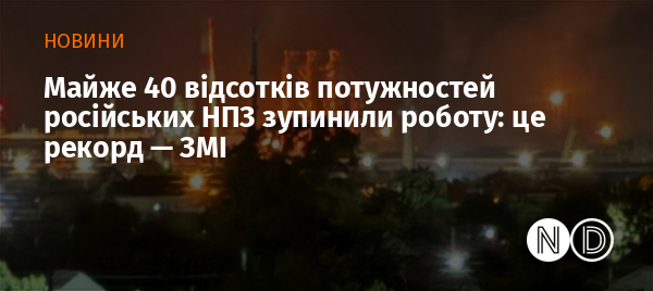 Станом на 28 вересня на нафтопереробних заводах (НПЗ) по всій Росії простоювали 38% потужностей первинної переробки нафти, або 338 тисяч тонн на добу. Про це повідомляє видання РБК з посиланням на дані агентства кількісної інформації «Сіала».