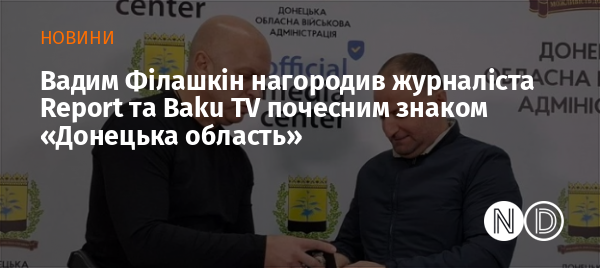 Як повідомляє Мedia.az з посиланням на Report, почесний нагрудний знак «Донецька область» вручив керівник воєнної адміністрації Донецької області генерал Вадим Філашкін.