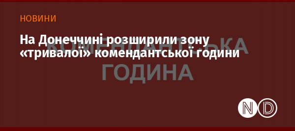 Глава Донецької ОВА Вадим Філашкін підписав розпорядження про розширення зони «тривалої» комендантської години. Це рішення прийнято у відповідь на звернення командування ОСУВ «Дніпро» та угруповання військ «Схід».