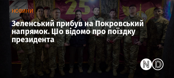 Президент України Володимир Зеленський зустрівся з українськими бійцями у смузі відповідальності 25-ї повітрянодесантної бригади, яка обороняє місто Покровськ на Донеччині та його околиці. Про це повідомили у пресслужбі Офісу президента України.