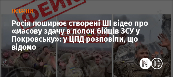 У ТікТок поширюється нова хвиля фейкових відео про «масову здачу в полон українських військових» у місті Покровськ Донецької області. Про це повідомили у Центрі протидії дезінформації РНБО.