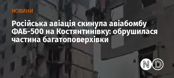 5 листопада російська авіація скинула керовану авіабомбу ФАБ-500 на місто Костянтинівка Донецької області. Про це повідомив голова Костянтинівської міської військової адміністрації Сергій Горбунов.