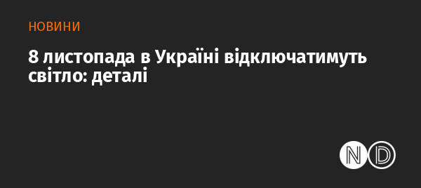 У суботу, 8 листопада, у всіх регіонах України буде запроваджено графіки відключення електроенергії. Причина запровадження обмежень — наслідки масованих російських атак на енергооб'єкти. Про це повідомили у пресслужбі Укренерго.