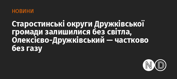 Внаслідок російських обстрілів усі старостинські округи Дружківської громади Донеччини залишилися без світла. Через обстріл Олексієво-Дружківський округ частково перебуває без газопостачання. Про це повідомили у пресслужбі Дружківської міської військової адміністрації.