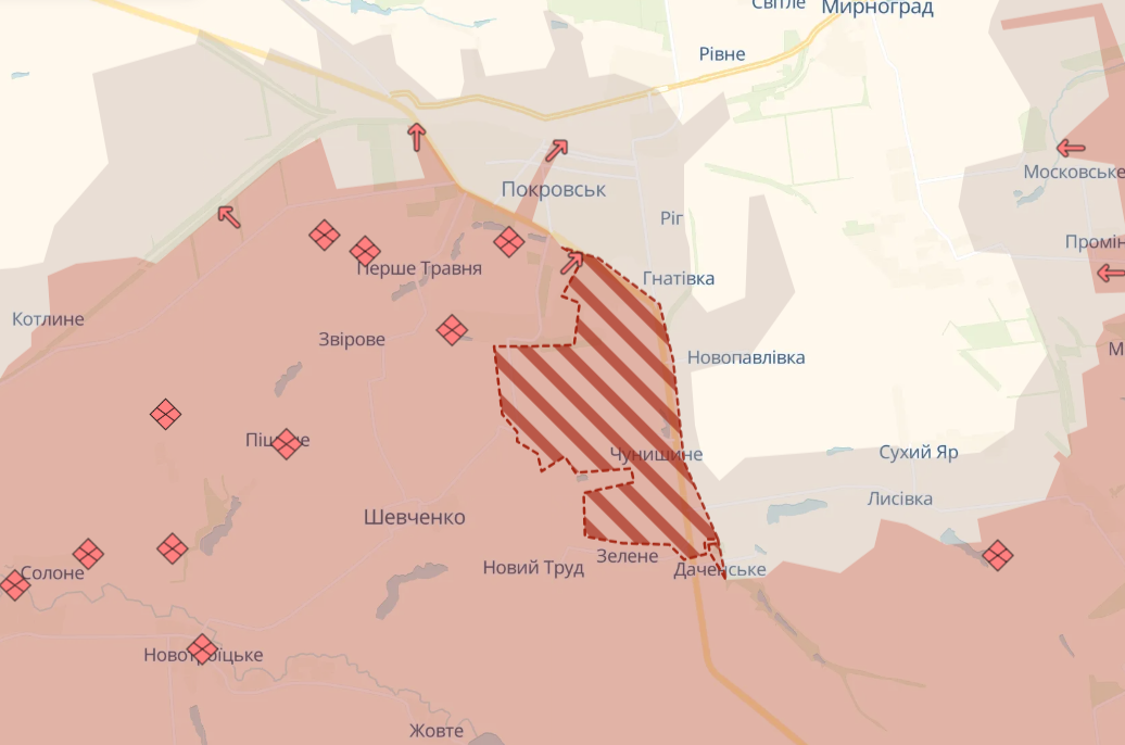Росіяни також просунулися у місті Покровськ та поблизу селища Чунишине на Донеччині.