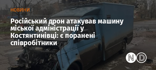 13 листопада російські окупанти FPV-дроном вдарили по машині міської військової адміністрації у Костянтинівці Донецької області. Про це повідомив голова Костянтинівської міської військової адміністрації Сергій Горбунов.